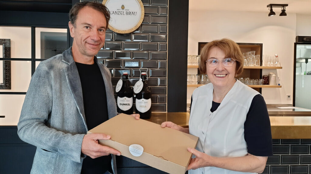 Die Küche ist das Reich von Anita Fuchs, der Seniorchefin des Betriebs. Dort wird leckere Hausmannskost mit individuellem Twist zubereitet. Auf der Karte stehen zum Beispiel Spezialitäten wie Wild oder Zicklein. Bei den Zutaten ist Regionalität ein wichtiges Kriterium, vieles wird sogar direkt im eigenen Betrieb hergestellt. So gibt es beispielsweise hausgemachtes Geräuchertes aus der eigenen Selche und selbstgebrautes Bier aus der Hausbrauerei Kanzel Bräu, die seit 2020 zum Gasthaus gehört. Gegessen und getrunken wird im urigen Gastraum oder im gemütlichen Biergarten. Anita kocht für ihr Leben gerne und liebt den täglichen Kontrakt mit den Leuten. „Das Wirtshaus is mei Leben!“, bringt sie es auf den Punkt.