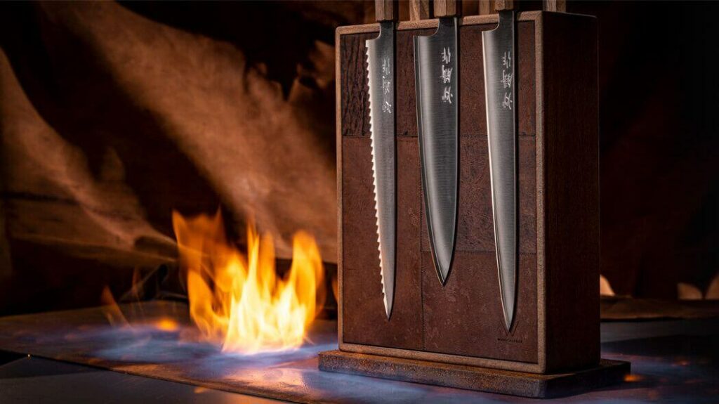 Wichtig war beim Design vor allem, einen Block für lange Messer, bis zu 27 cm Klingenlänge, zu schaffen und ein schmäleres Gehäuse, welches man beidseitig bestücken kann. Die Anregung kam von einem unserer langjährigen Fachhändler, der den Block auch in Küchen mit kleiner Ablagefläche sieht. Dafür ist es wichtig, dass er wenig Platz einnimmt.