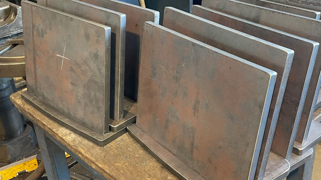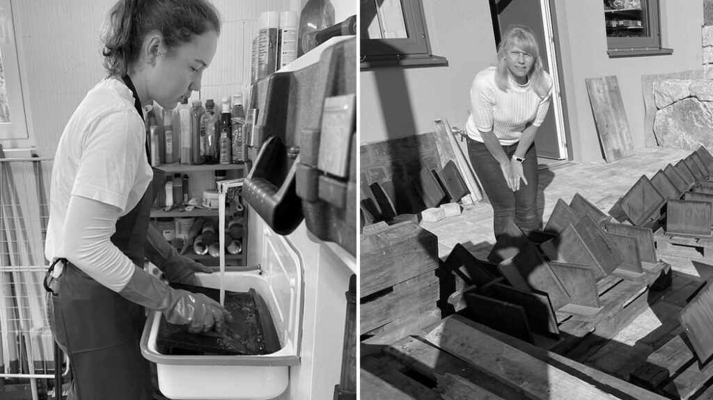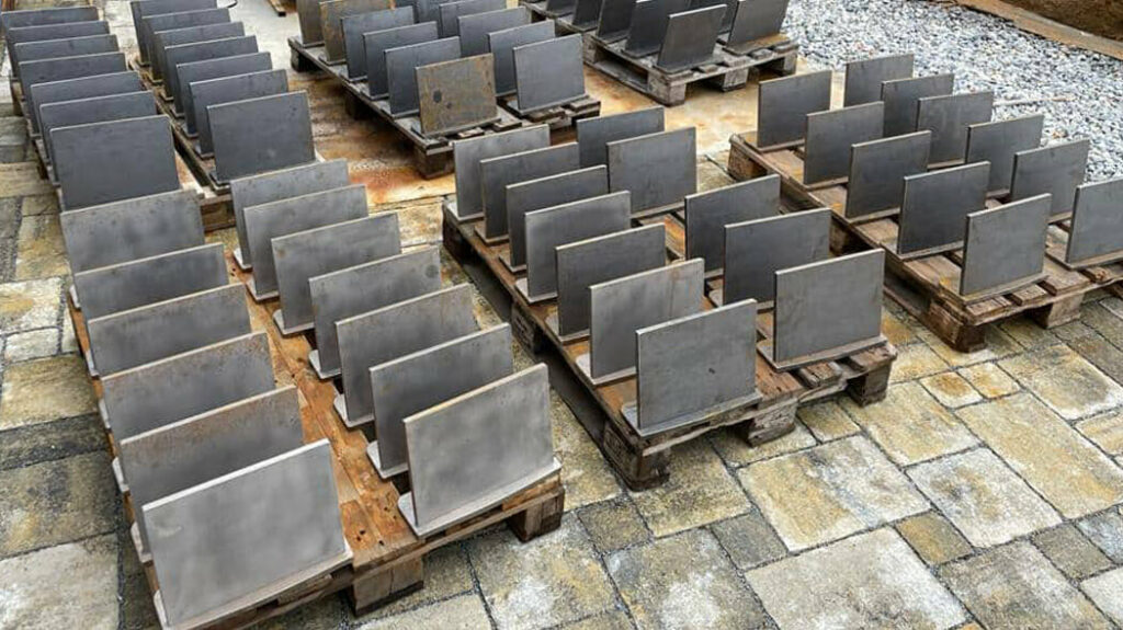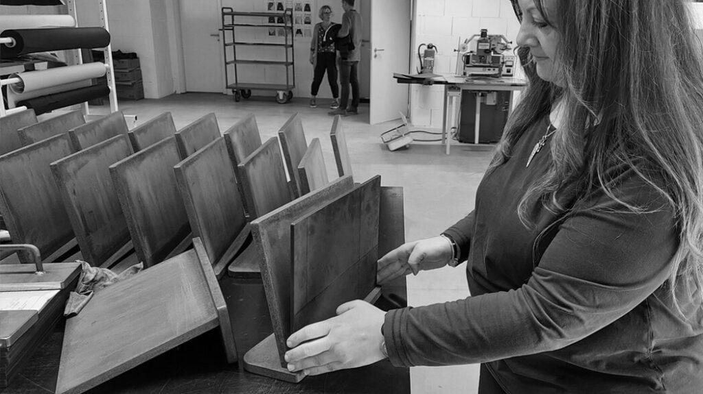 Auch mit der Block-Produktion wurde in der Zwischenzeit begonnen. Am schwierigsten gestaltete es sich, den perfekten Rost-Look hinzubekommen. Die Stahl-Rohlinge kommen frisch, also ungerostet, bei uns in der Manufaktur an und müssen dann in vielen Arbeitsschritten entsprechend behandelt geputzt werden, um die ausdrucksstarke Rost-Optik zu erzeugen.