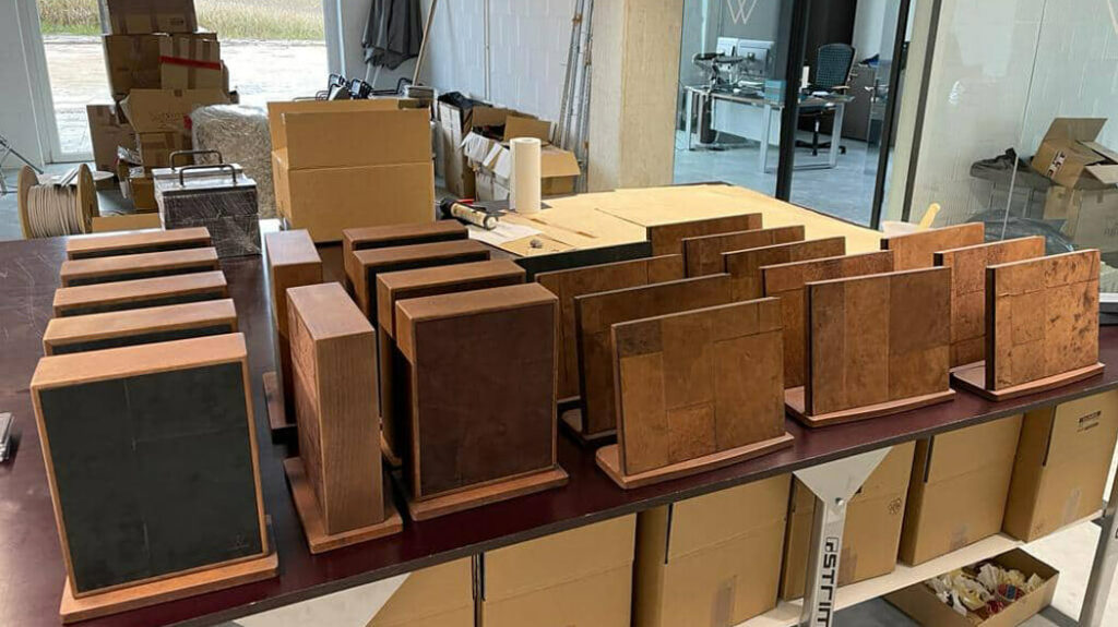 Eine weitere Herausforderung waren Verpackung und Versand. Das hohe Gewicht der Messerblöcke, das für die Funktion unbedingt nötig ist, stellt einige Ansprüche an die Verpackung. Die Blöcke sollen ja unversehrt bei unseren Wunschkunden ankommen und die Verpackung sollte möglichst nachhaltig sein! Mittlerweile haben wir aber auch dafür eine Lösung gefunden: Eine passgenaue Form aus recyceltem Schaum für den Block Stahl und Füllmaterial aus Pappe für den Block Holz.