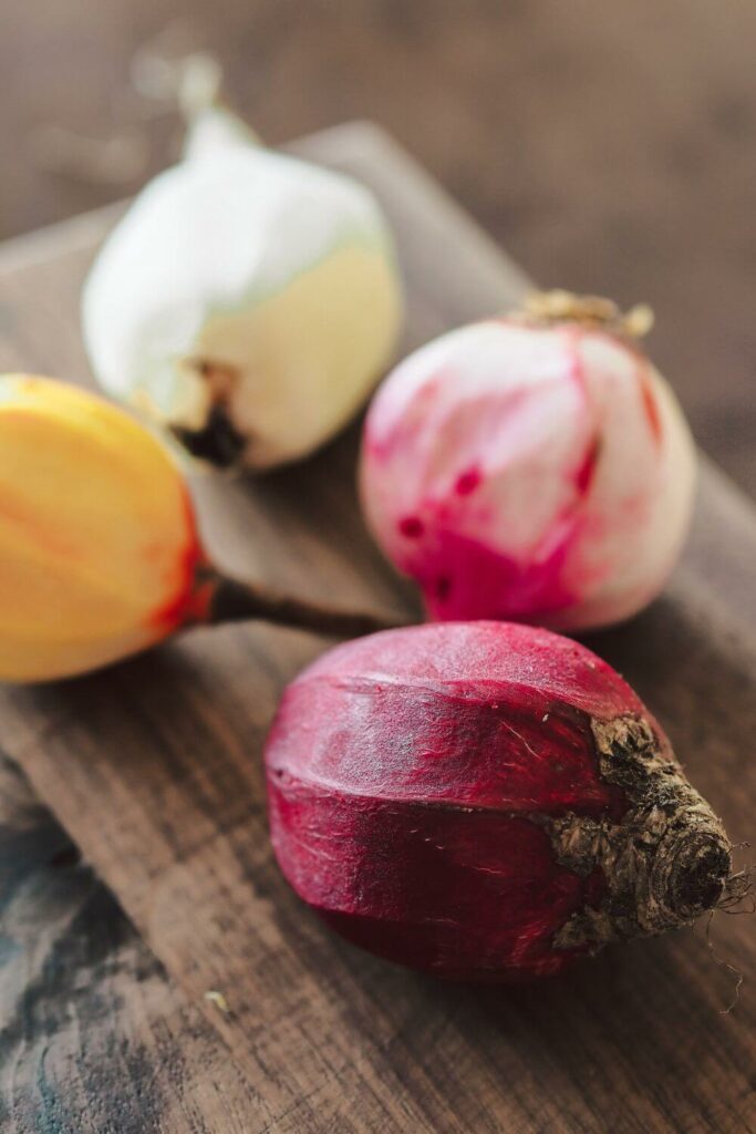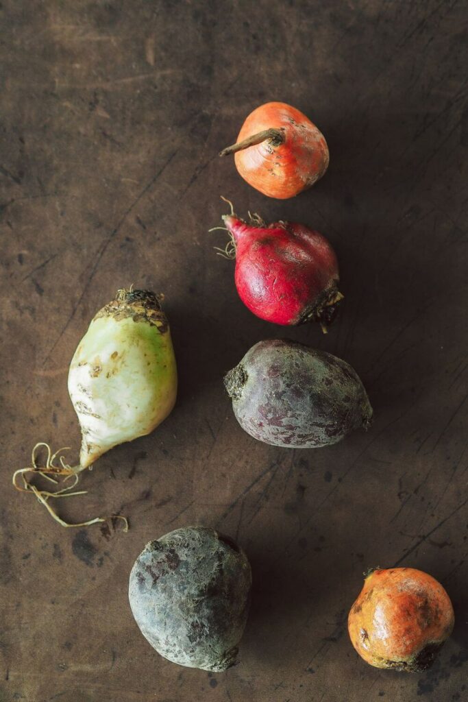4-6 Knollen bunte Bete gelb, weiß, rot, geringelt