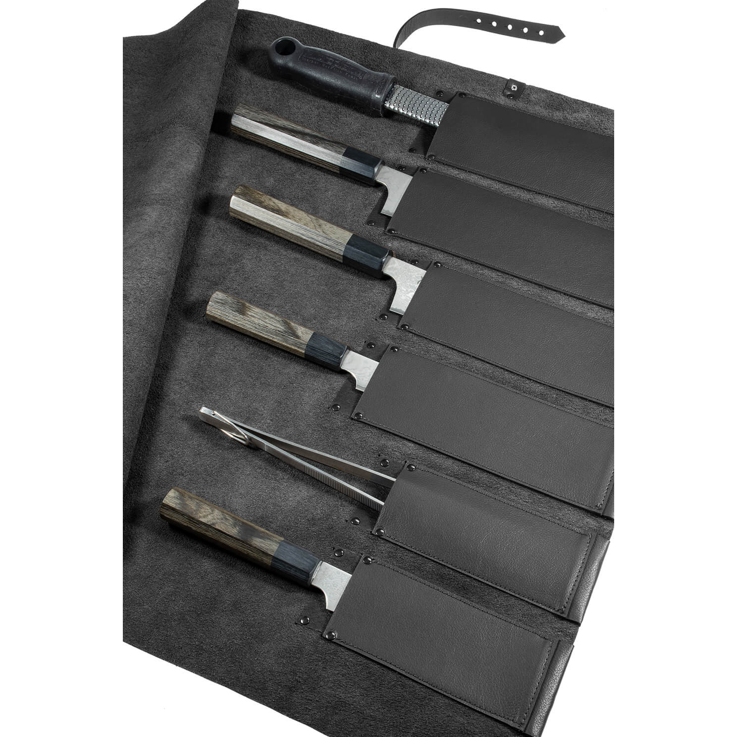 Aus dem Wunschleder Sortiment sind natürlich auch wieder die passenden Produkte zum Einsatz gekommen! Ich habe die Fladenbrote auf grauen Tischsets serviert. Fehlen darf auf keinen Fall ein scharfes Messer zum durchschneiden, ansonsten ist es nicht ganz so leicht, den belegten Fladen zum Mund zu führen… Das Messer liegt im Klingenschutz gemeinsam mit einer Serviette bereit. Mehr braucht es für dieses Essen auch nicht – simpel und einfach, aber schön!
