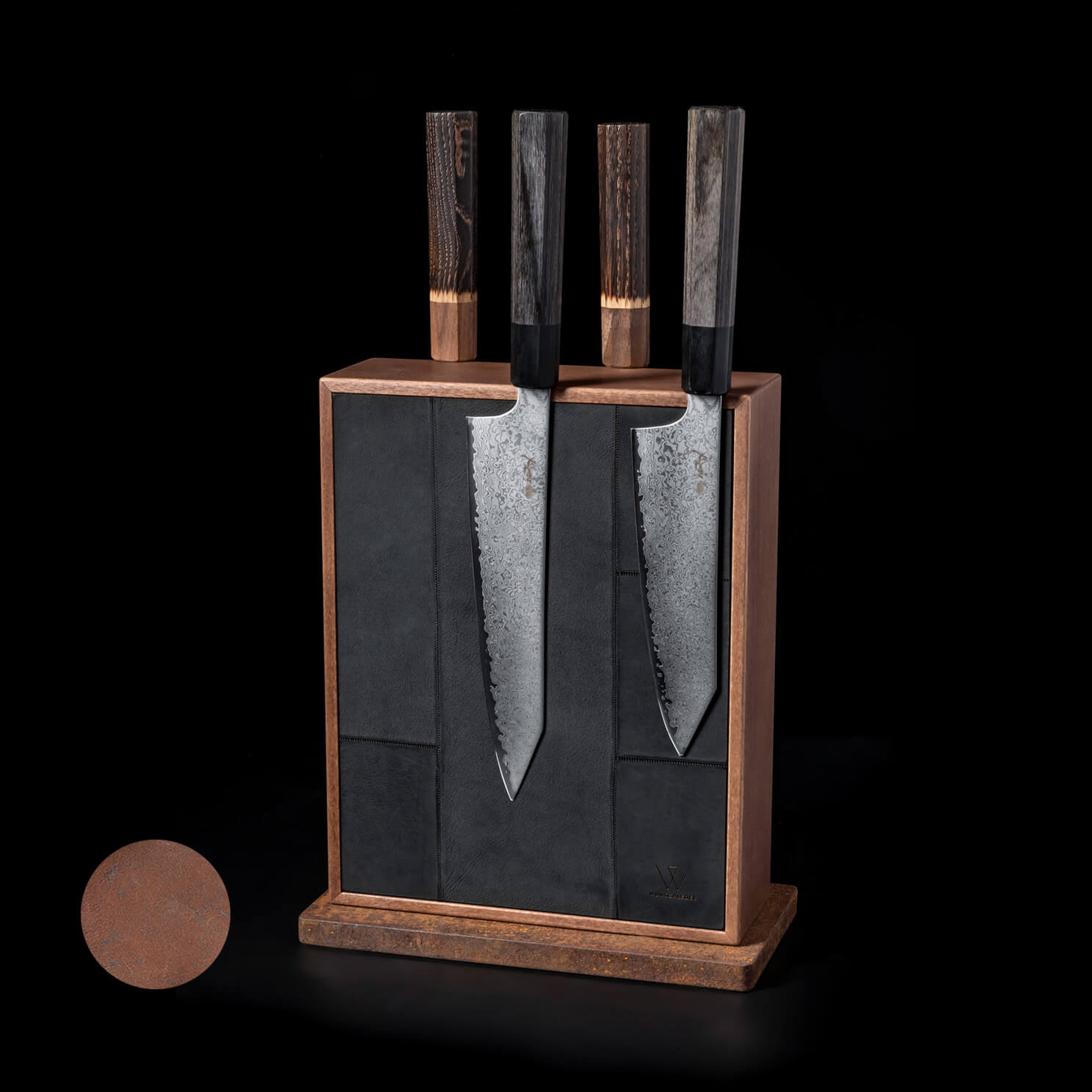 Einzigartiger Messerblock mit magnetischen Lederflächen