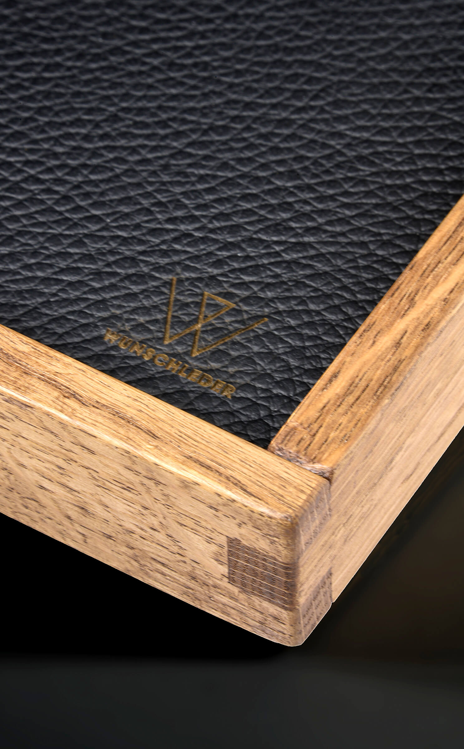 Die Kombination aus den Naturmaterialien Holz und Leder sorgt für eine tolle Haptik und einen einzigartig hochwertigen Look.