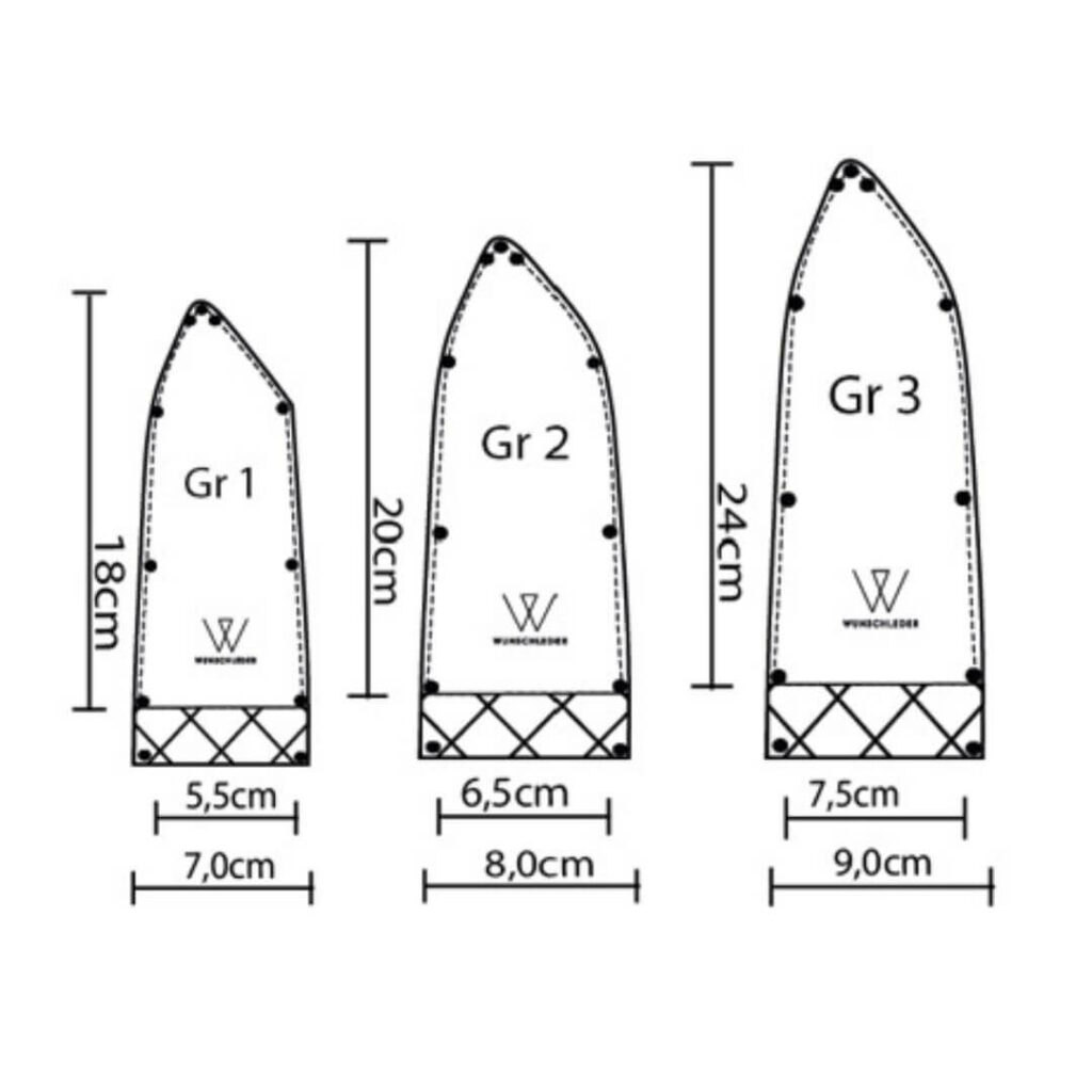 Bei Wunschleder HOME hat die Funktionalität unserer Designs Priorität! Für den Klingenschutz heißt das unter anderem: Die Unterseite des Köchers ist um 2,0 cm länger als die Oberseite. Das erleichtert das Einführen der Klinge erheblich.
