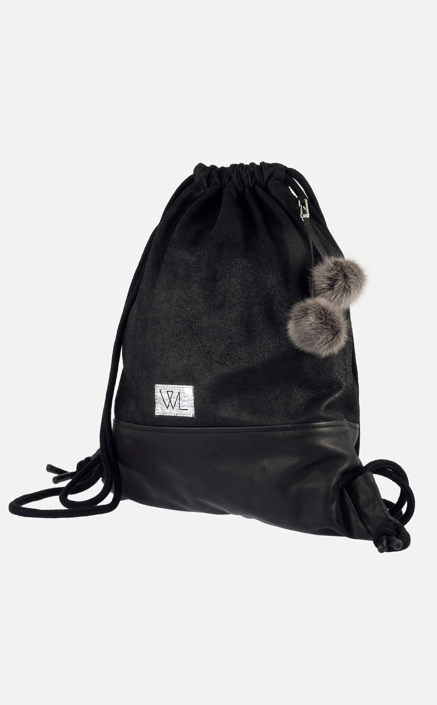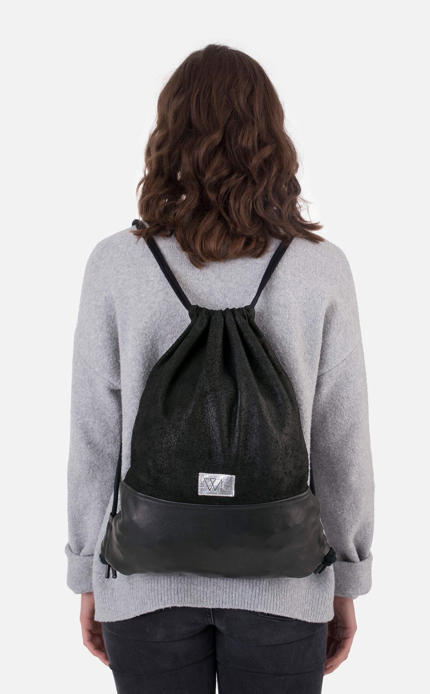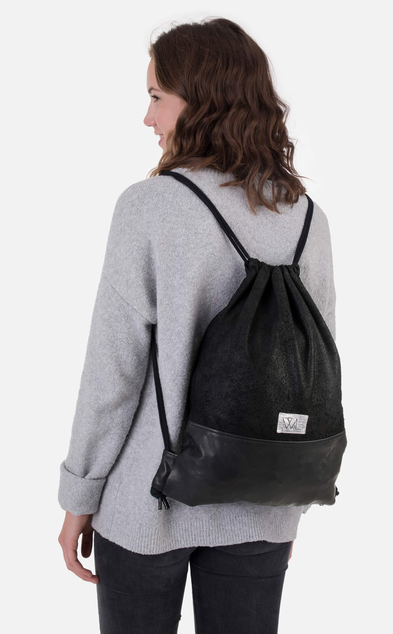 • Handgenähter Turnbeutel aus aufgerauhtem Lammnappaleder mit einzigartiger Oberflächenstruktur