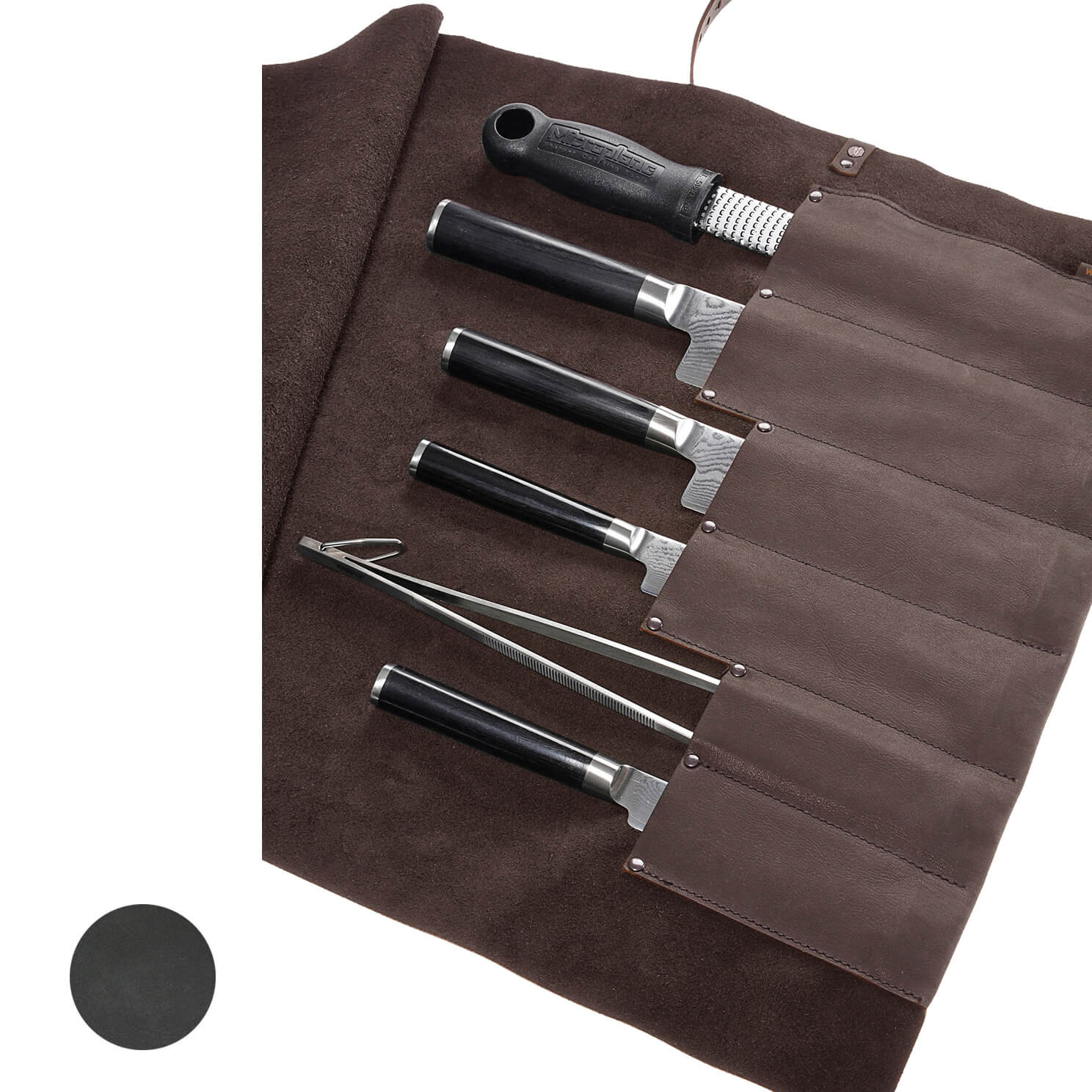 Du liebst gutes Essen und legst großen Wert auf dein Kochequipment? Du hast mehrere teure Messer in der Schublade liegen? Dann solltest du in eine hochwertige Messertasche investieren! In dieser Tasche haben bis zu sechs unterschiedlich große Messer Platz und der Köcherboden ist mit Kevlar-Gewebe verstärkt.