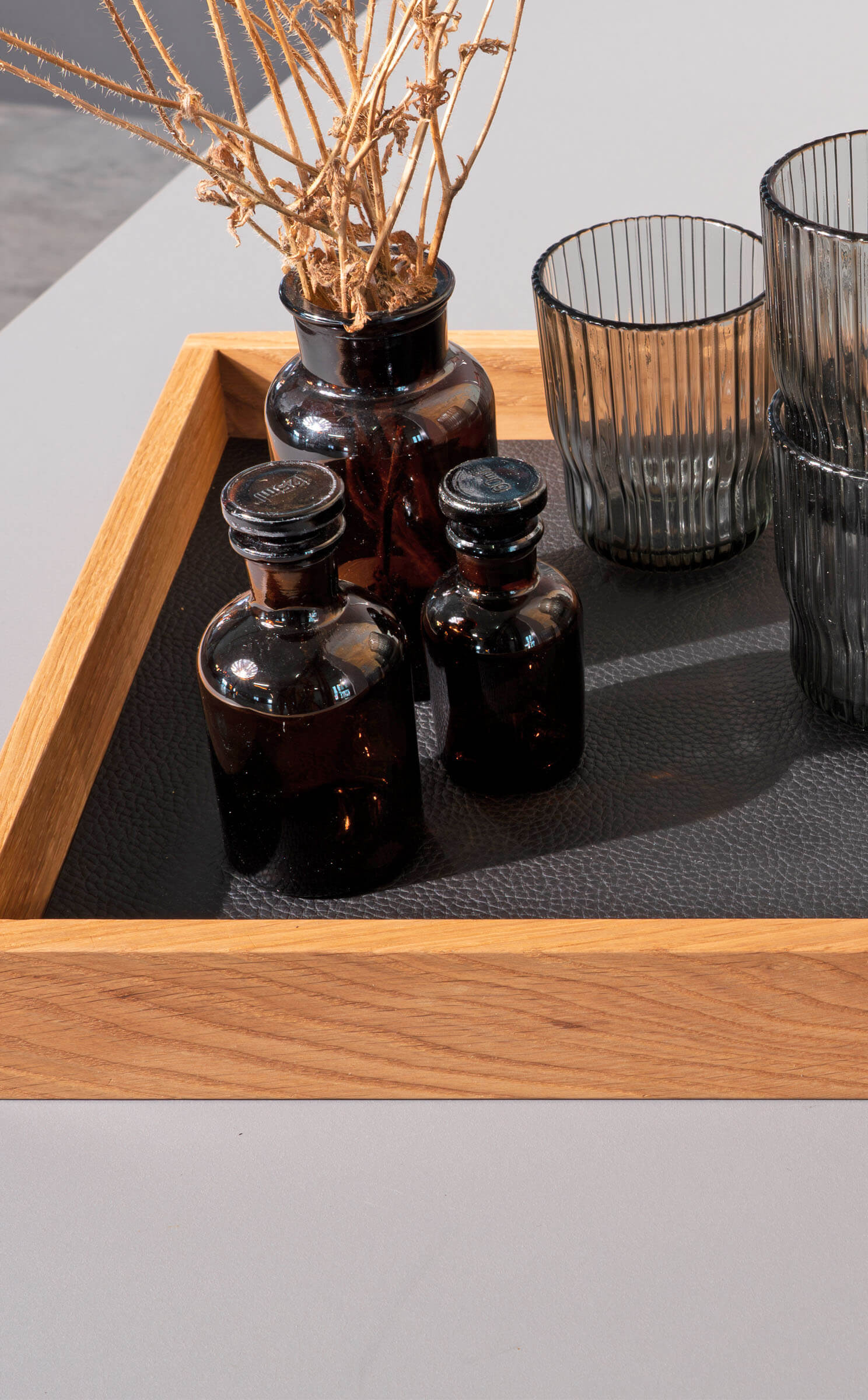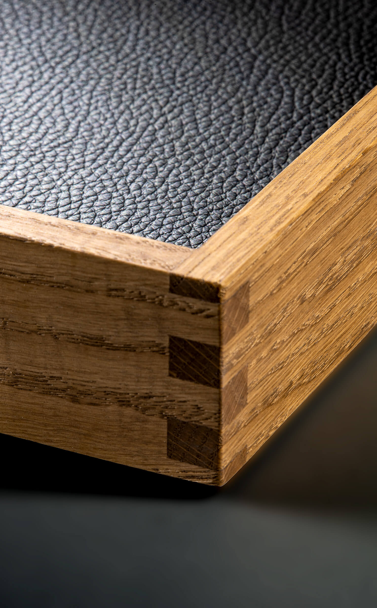 Die Kombination aus den Naturmaterialien Holz und Leder sorgt fรผr eine tolle Haptik und einen einzigartig hochwertigen Look.