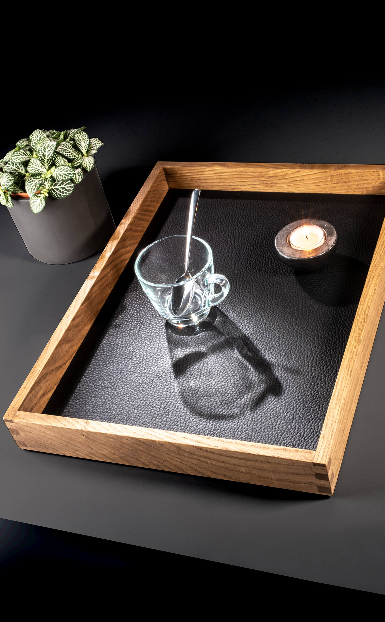 Wenn Freunde oder Familie zu Besuch kommen, mรถchtest du elegant Getrรคnke und Knabbereien servieren? Und am liebsten nicht mehrmals in die Kรผche laufen? Dann ist dieses edle Holztablett mit Lederinlay perfekt fรผr dich!