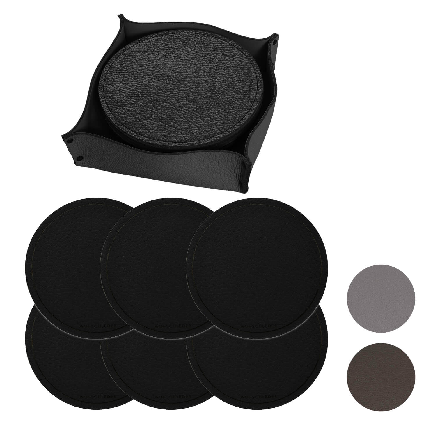 Bei Wunschleder HOME haben hochwertige Materialien und fachkundige Verarbeitung oberste Prioritรคt! Das komplette Set wird aus strapazierfรคhigem Rindleder mit dezenter Struktur hergestellt. Selbstverstรคndlich wird es wie alle unsere Produkte in aufwendiger Handarbeit in unserer eigenen Ledermanufaktur gefertigt.