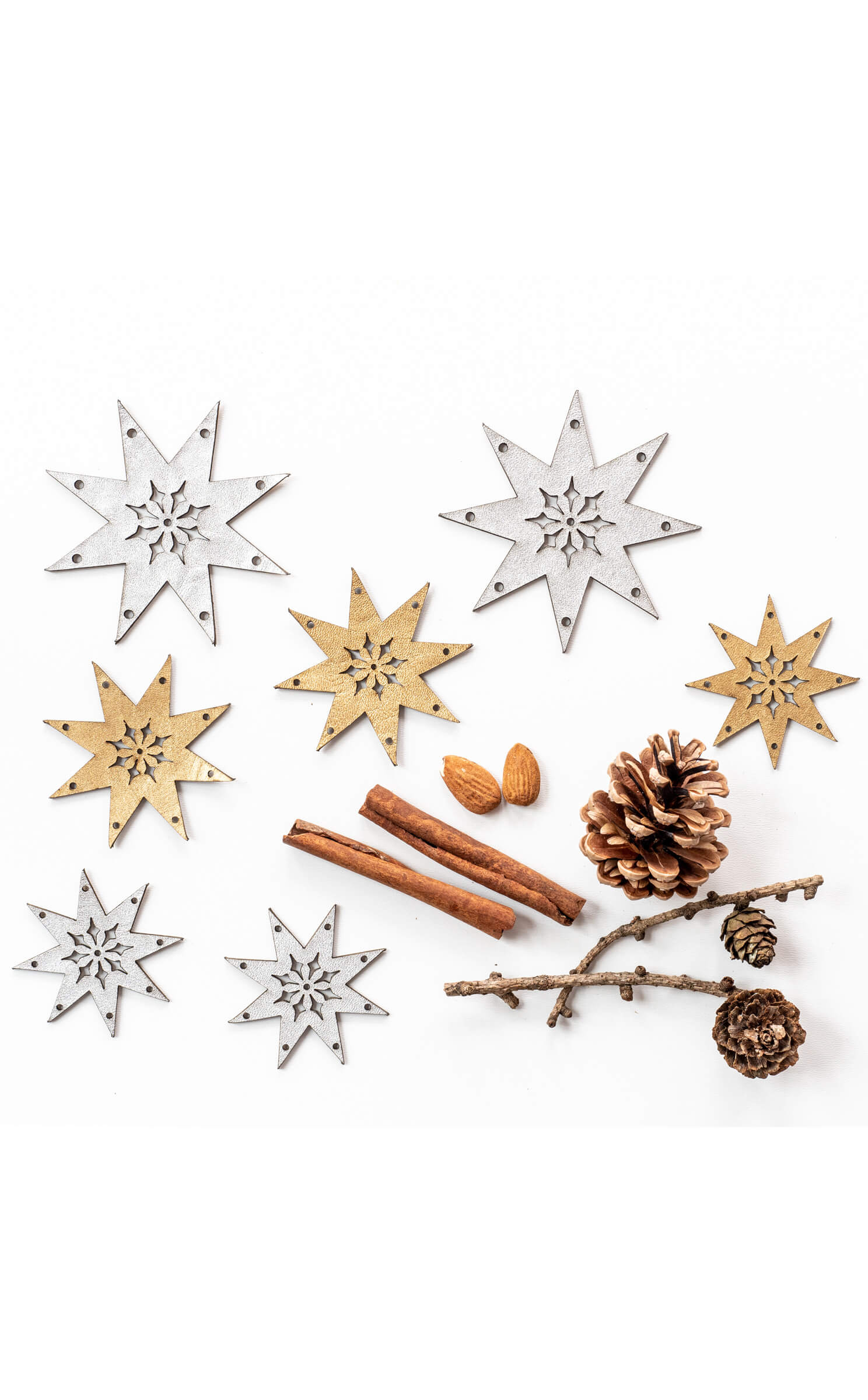 • Set aus 12 Sternen mit 6 cm, 7 cm und 9 cm Durchmesser