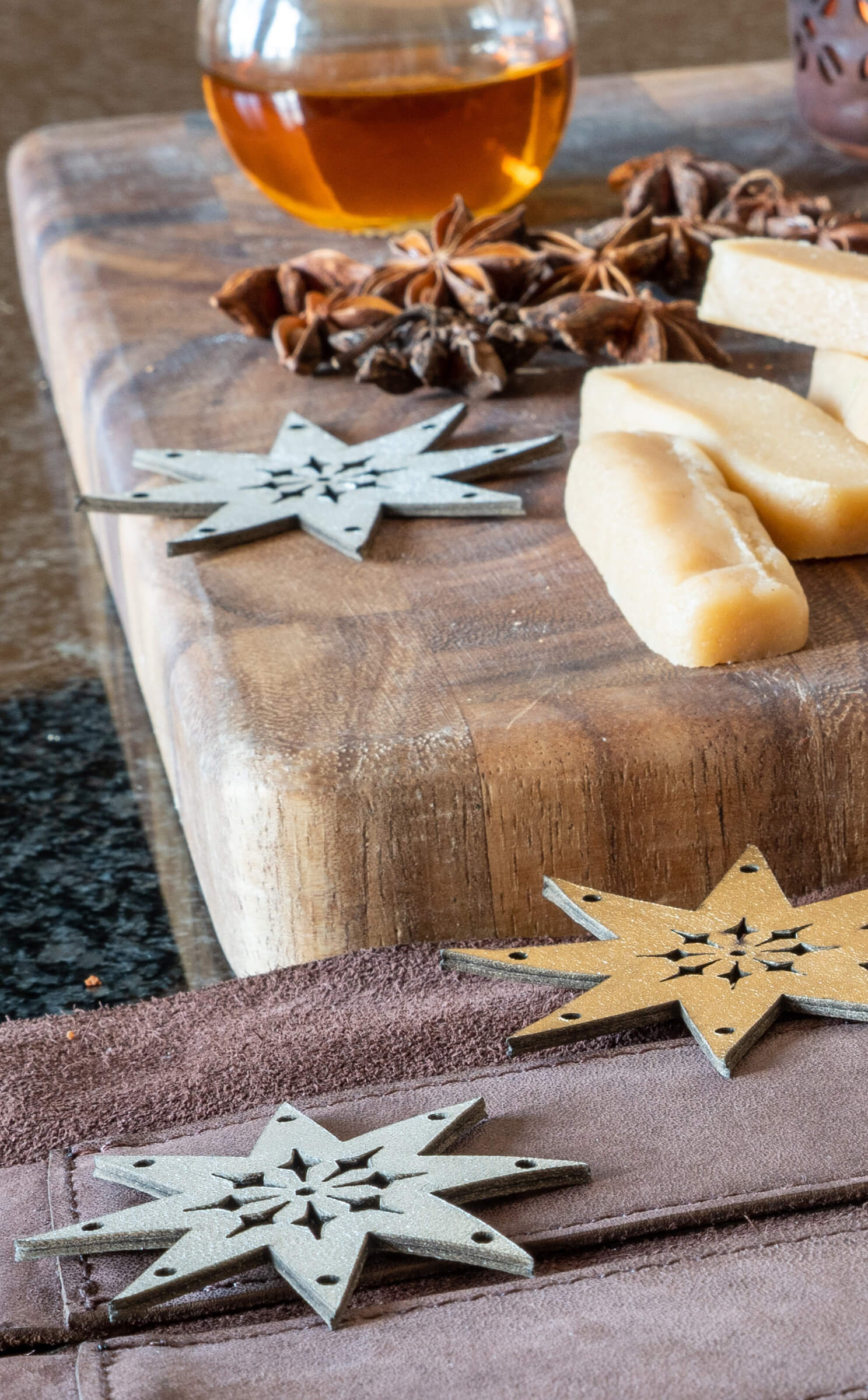Verleihe deiner Weihnachtsdeko einen ganz besonderen eleganten Flair – mit den glänzenden Ledersternen von Wunschleder HOME!
