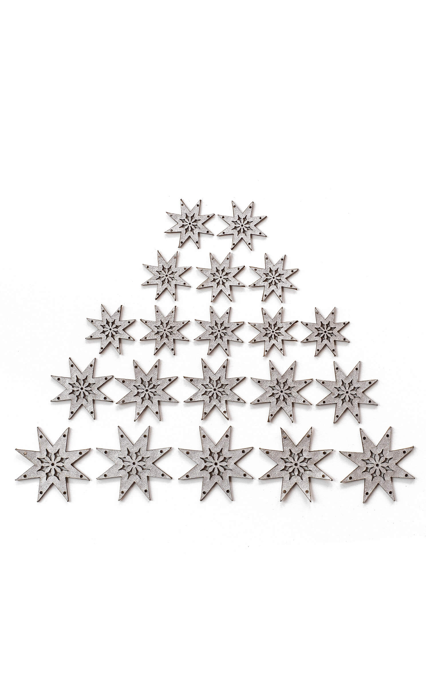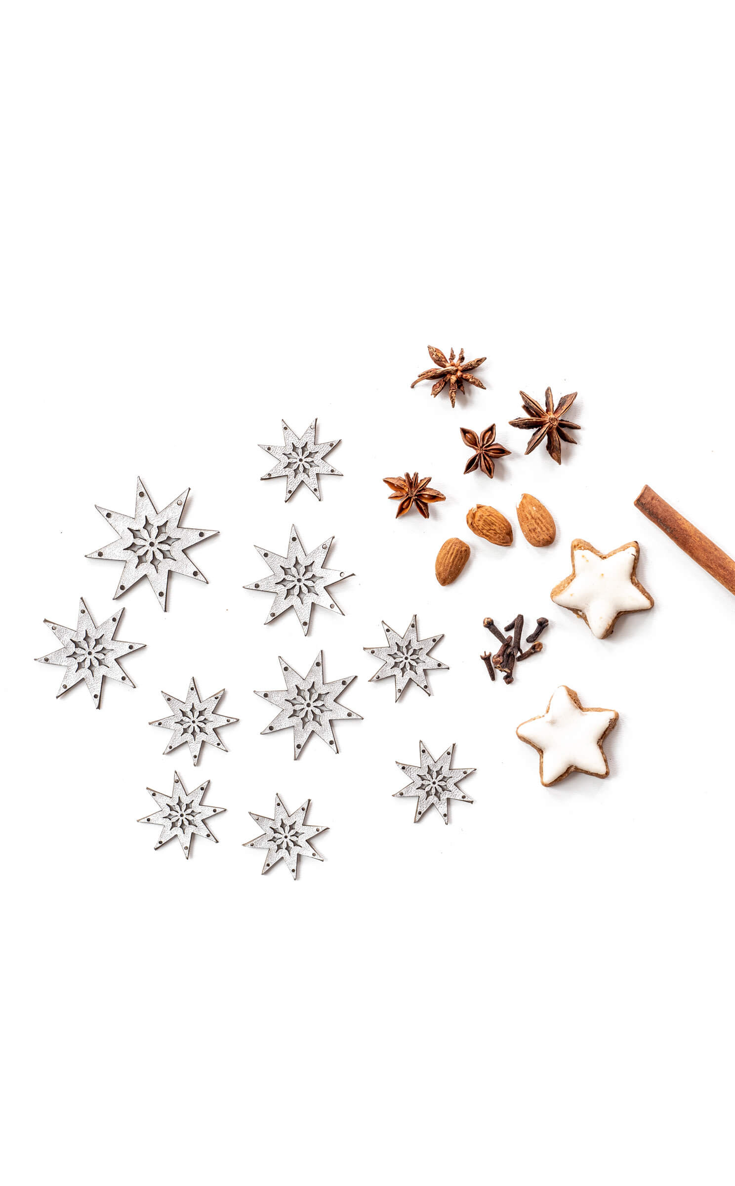 Dieses Tischdeko-Set besteht aus 20 edlen Leder-Sternen, die in liebevoller Handarbeit vom Wunschleder-Team gefertigt werden. 10 Sterne werden in der Größe 1 (4 cm) geliefert, 5 Sterne in der Größe 2 (5 cm) und 5 Sterne in 3 (6 cm). Auf der einen Seite bestehen die Sterne aus goldfarbenem Lammnappa, auf der anderen Seite aus silbernem Lammnappa. Je nach Lust und Laune kann hier die Tischdeko farblich angepasst werden. Das einzigartige filigrane Design wird mittels Lasercut kreiert und erinnert entfernt an Schneeflocken.