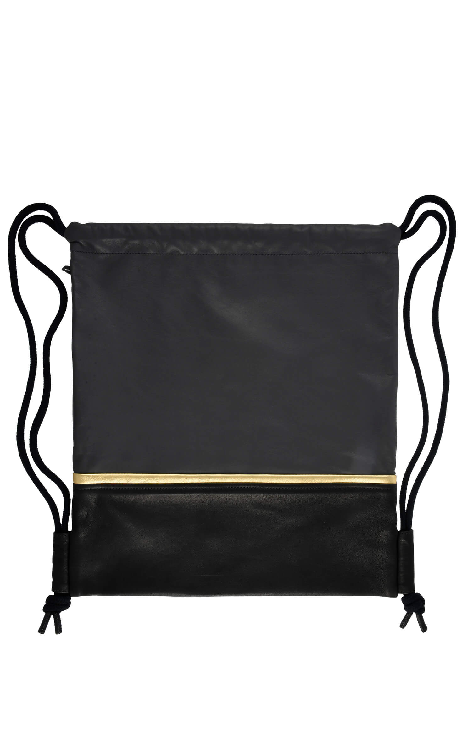 Durch die neutrale Farbgebung in Dunkelgrau, Schwarz und Gold lässt sich der Turnbeutel zu besonders vielen Outfits kombinieren – er passt zum kleinen Schwarzen ebenso wie zu Jeans und T-Shirt. Der perfekte Begleiter für jede Gelegenheit!