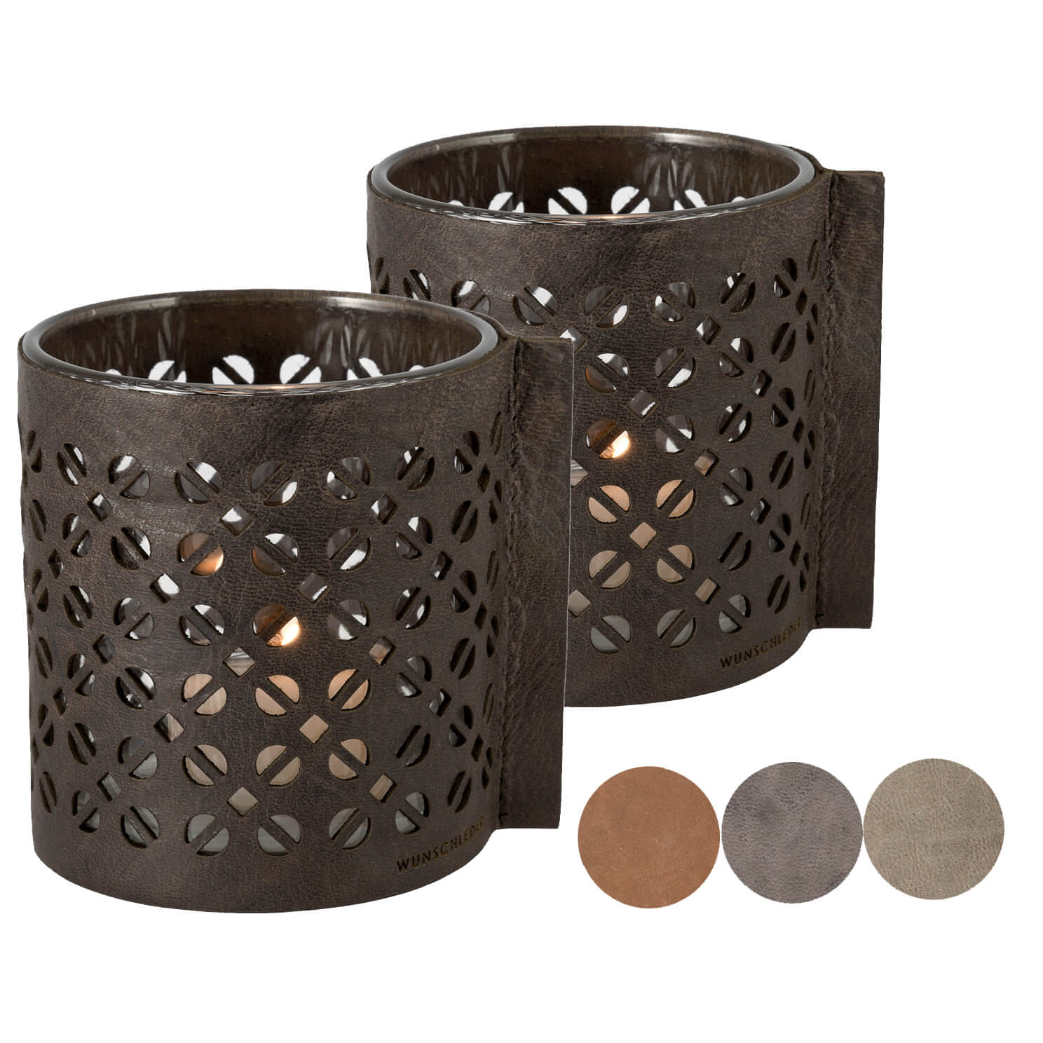 Durch das Lasercut-Muster im Lederüberzug kommt das Kerzenlicht wunderschön zur Geltung und das Windlicht schafft somit ein behagliches, angenehmes Licht. Es eignet sich ideal als Geschenkidee oder als individuelle Tischdekoration. Damit du deiner Kreativität freien Lauf lassen kannst, bieten wir dieses Windlicht in verschiedenen Farbtönen an. Welche ist deine Lieblingsfarbe?