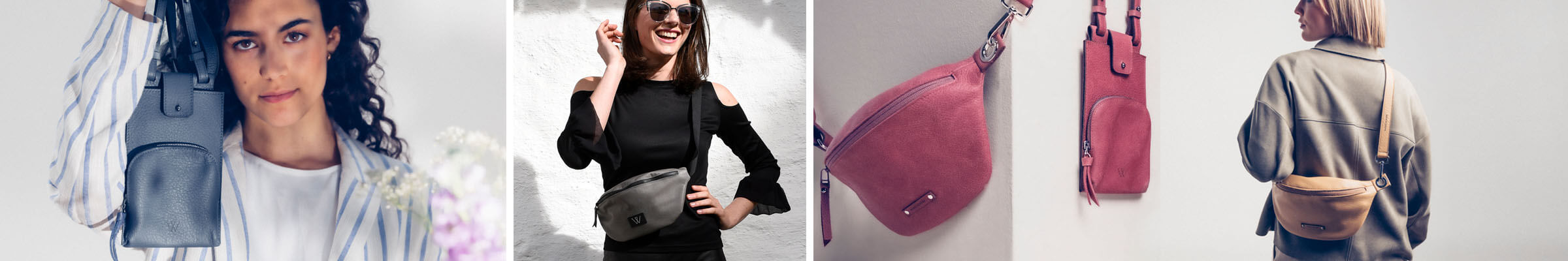 Die Bauchtasche wird, wie der Name schon sagt, um die Hüften getragen. Das ist aber nur eine von vielen Tragevarianten. Echte Fashionistas tragen die kleine Tasche zum Beispiel crossbody über der Schulter. Dieses Modell verfügt über ein großes Reißverschlussfach und je nach Variante weitere Steck- und Reißverschlussfächer. Beim neuesten Modell kannst du sogar den kompletten Riemen abnehmen und nach Lust und Laune wechseln. Die Bauchtasche ist eine eher sportliche kleine Tasche, dank des cleanen, minimalistischen Designs passt die Wunschleder Bauchtasche aber auch zu eleganteren Outfits.