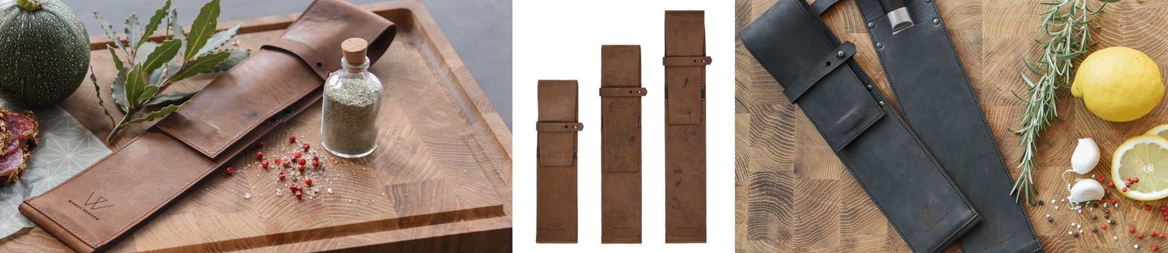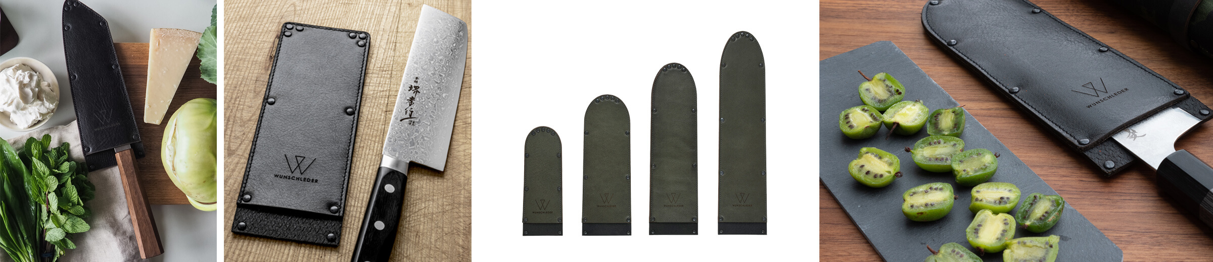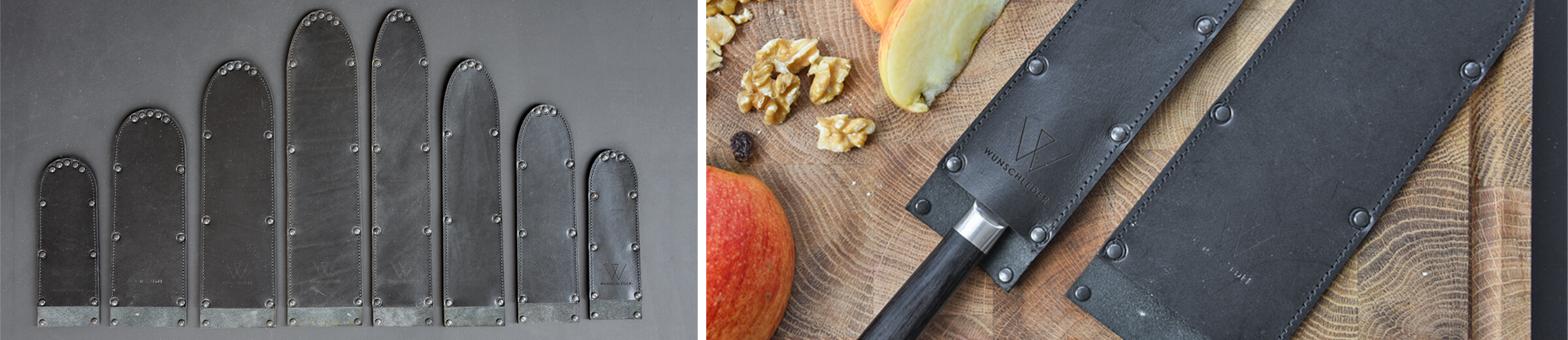 Hochwertige Kochmesser verfügen meist über eine besonders scharfe, aber auch sehr empfindliche Klinge. Um deine besten Messer vor Abstumpfen oder Bruch zu schützen, bewahrst du sie am besten in einem passenden Klingenschutz auf. Eine große Auswahl an Messerhüllen in unterschiedlichen Varianten und Farben findest du hier in unserem Shop. Aber was ist das besondere bei Wunschleder?