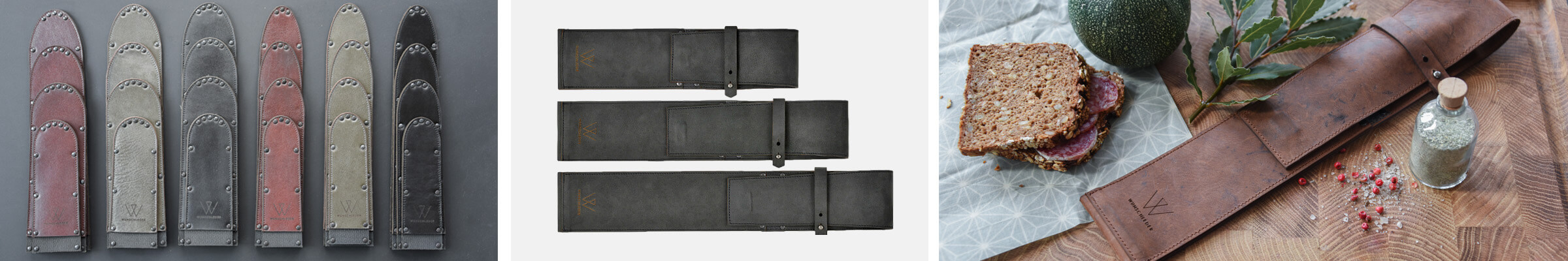 Hochwertige Kochmesser verfügen meist über eine besonders scharfe, aber auch sehr empfindliche Klinge. Um deine besten Messer vor Abstumpfen oder Bruch zu schützen, bewahrst du sie am besten in einem passenden Klingenschutz auf. Eine große Auswahl an Messerhüllen in unterschiedlichen Varianten und Farben findest du hier in unserem Shop. Aber was ist das besondere bei Wunschleder?