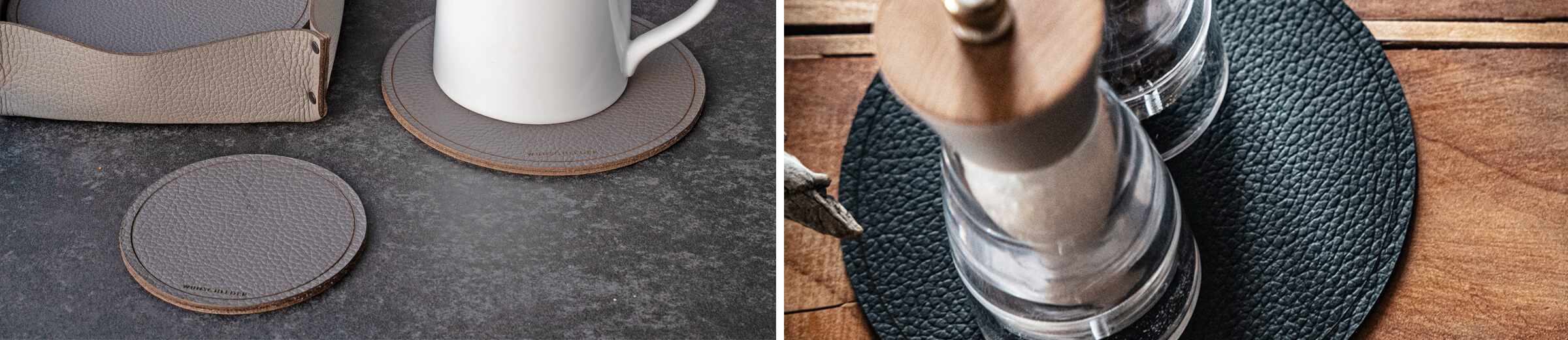 Glasuntersetzer schützen den Tisch vor unschönen Rändern und Flecken, das ist ihr praktischer Nutzen – aber Glasuntersetzer aus Leder können auch ein optisch ansprechendes Element der Tischdeko sein!