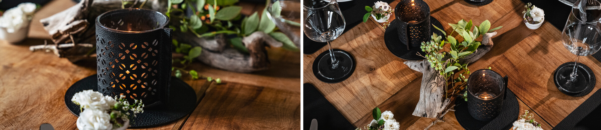 Gerade im Sommer haben viele Menschen immer frische Schnittblumen zu Hause. Blumen eignen sich hervorragend als Deko-Partner für dein Wunschleder Home Windlicht. Am besten bindest du einen kleinen Blumenkranz und stellst das Windlicht in die Mitte. Durch das lebendige Spiel aus Licht und Schatten kommen die Blumen noch besser zur Geltung.
