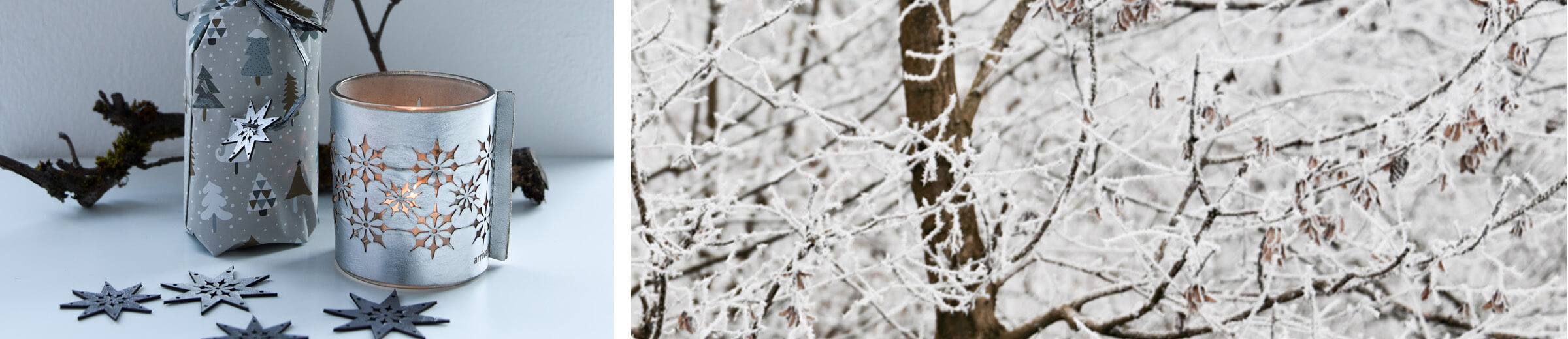 Du kannst dein Windlicht auch mit Dingen kombinieren, die bereits in deinem Haushalt vorhanden sind. Ein ungezwungen wirkender Materialmix ist die Königsdisziplin in Sachen Deko. Vielleicht hast du Figuren aus Holz zu Hause? Oder verspielte Kerzenhalter? Oder eine Laterne aus Metall? Arrangiere die verschiedenen Materialien zu einem hübschen und individuellen Deko-Ensemble. Tipp: Auch einzelne Kerzen machen sich gut im Materialmix.